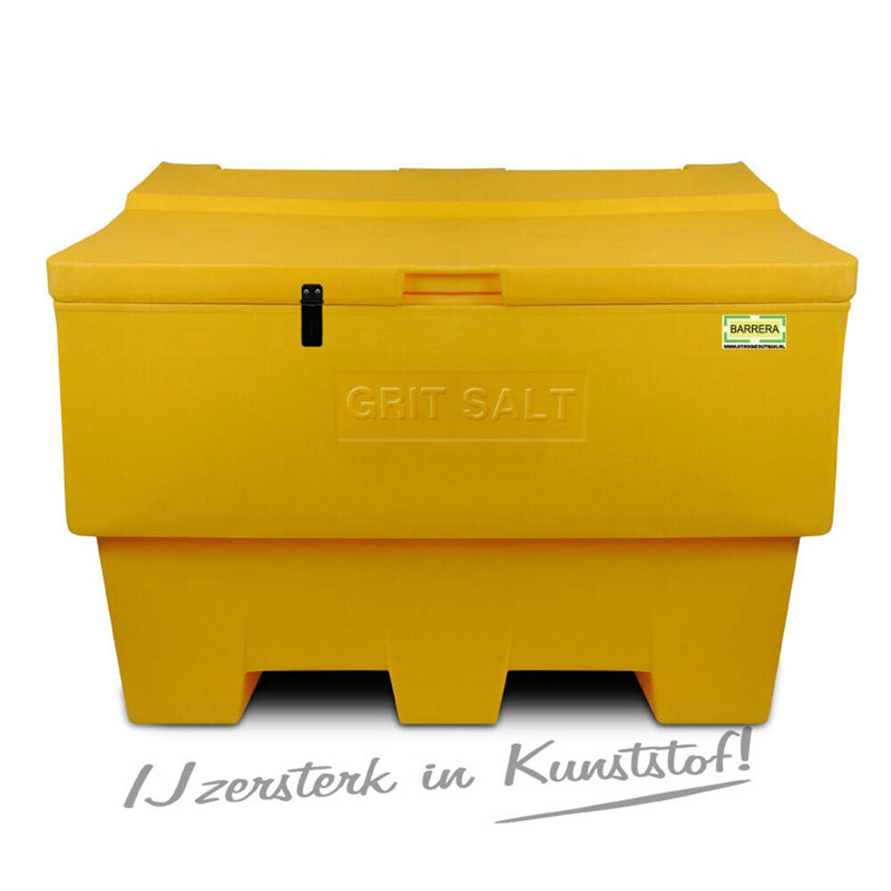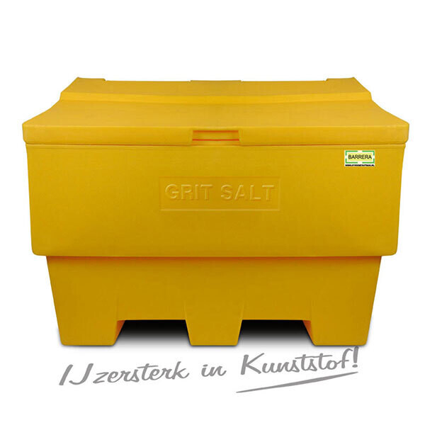 Wij bieden u onze hoogwaardige zoutkist van 350 liter (PE). Deze stapelbare zoutkist is vervaardigd van UV-bestendig kunststof in een opvallende donker gele kleur, waardoor deze zelfs onder alle weersomstandigheden goed zichtbaar is.