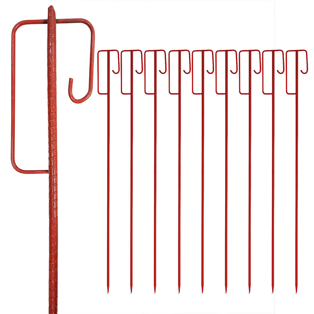Elke pen heeft een lengte van 1.20 meter, wat ervoor zorgt dat uw materialen stevig en veilig kunnen worden bevestigd. De set bestaat uit 10 stuks, waardoor u voldoende pennen heeft voor verschillende toepassingen of om een groot gebied te beveiligen.