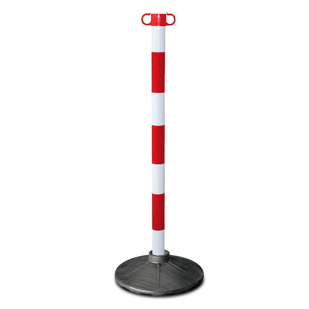 Bij bieden u de kunststof kettingpaal met rubber voet. Deze paal is vervaardigd van hoogwaardig, stevig wit kunststof en heeft rode reflectiestickers voor een optimale zichtbaarheid. Door zijn robuuste constructie is de paal bestand tegen zout en UV-straling, waardoor deze geschikt is voor gebruik in uiteenlopende omstandigheden en weersomstandigheden.