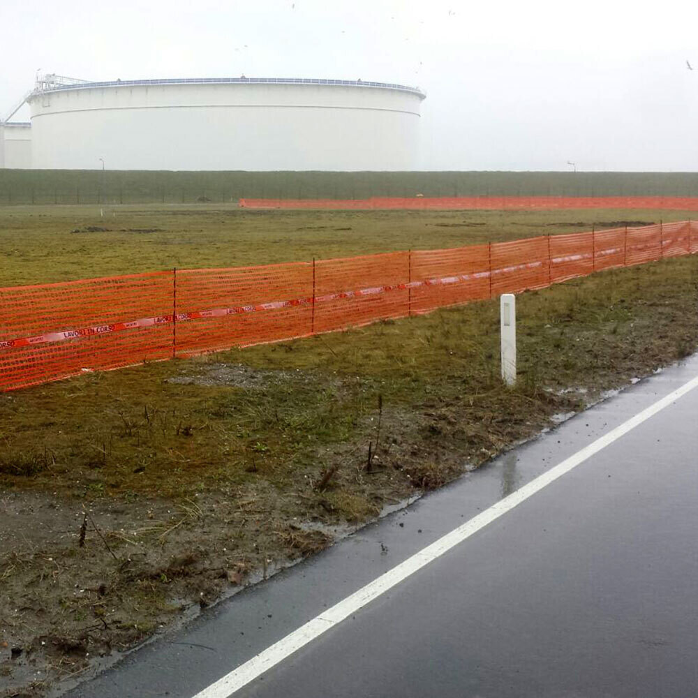 De maasgrootte van het gaas is 45 x 40 mm, wat zorgt voor een optimale balans tussen veiligheid en luchtdoorlaatbaarheid. Het gaas is uitgevoerd in een opvallende oranje kleur, waardoor het goed zichtbaar is voor bezoekers en passanten. Zo zorgt u voor een goede afzetting en veiligheid.
